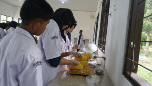 Bertempat di Lab. APHP, peserta didik dibagi menjadi beberapa kelompok. Kelompok yang mendapatkan materi Pengolahan Buah membuat minuman sari buah nanas, sedangkan kelompok yang mendapatkan materi Mengembangkan Produk Inovatif membuat berbagai macam makanan seperti Dimsum Bligo, Siomay & Batagor Labu Siam, dll.